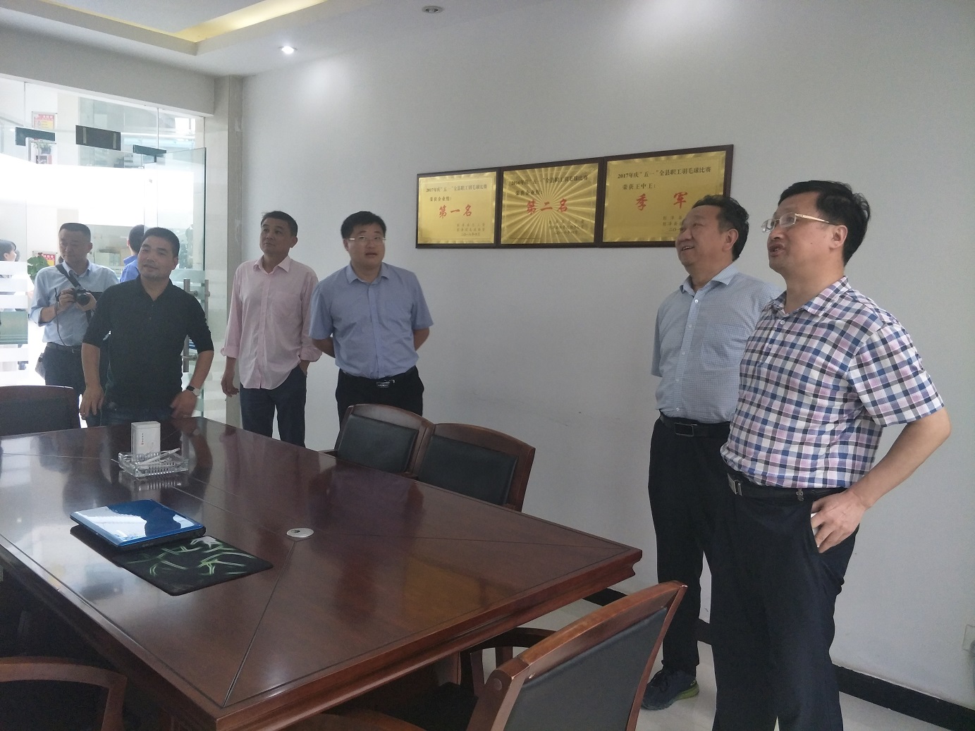 5月31日,江西省總工會紀(jì)檢組組長吳鋒、副組長方琴、九江市總工會常務(wù)副主席王金初等一行省、市級領(lǐng)導(dǎo)在彭澤縣縣委常委園區(qū)黨工委書記華燁、副縣長戢東曉,縣總工會等領(lǐng)導(dǎo)的陪同下來我公司調(diào)研指導(dǎo)工作。