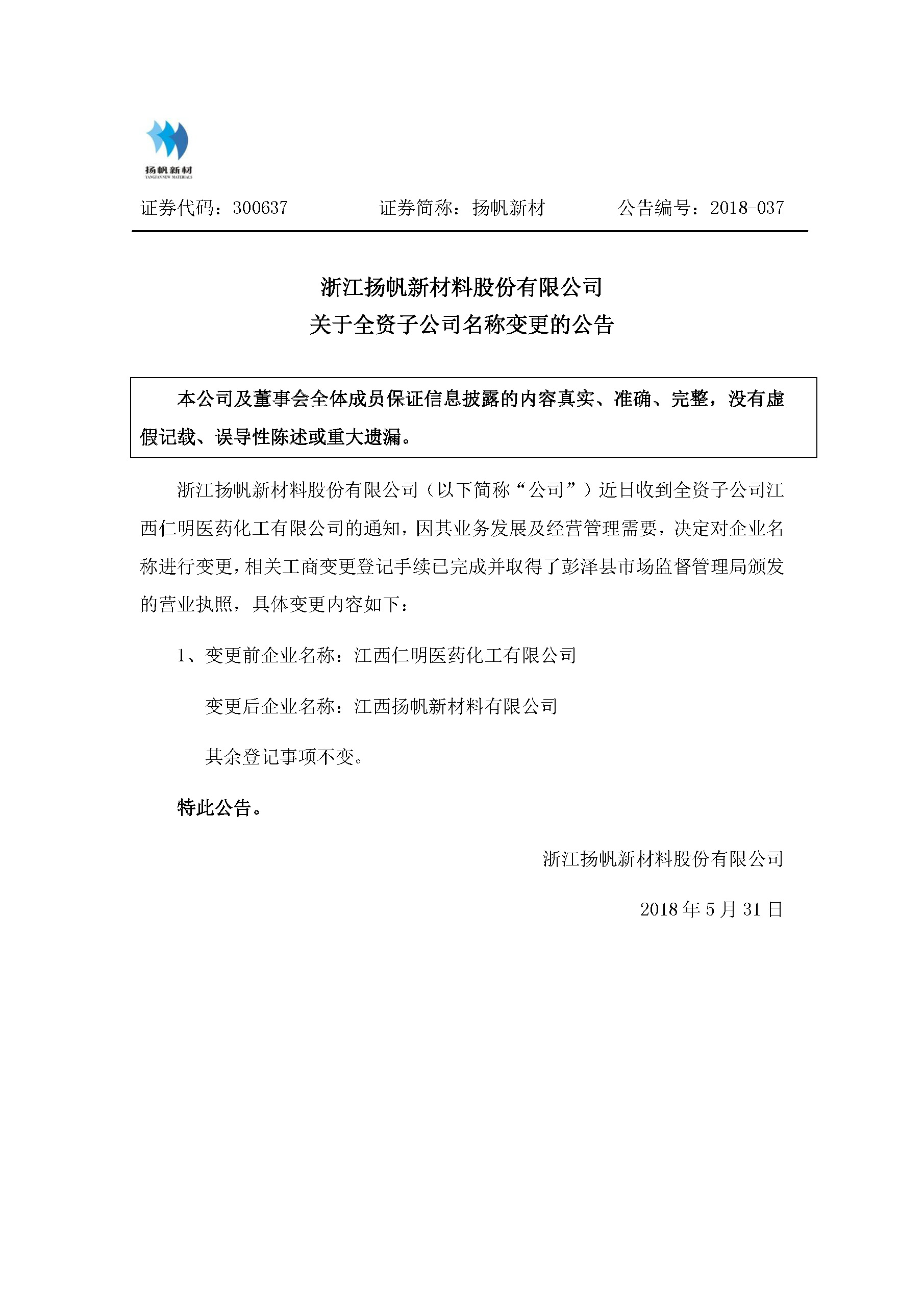 關于全資子公司名稱變更事宜