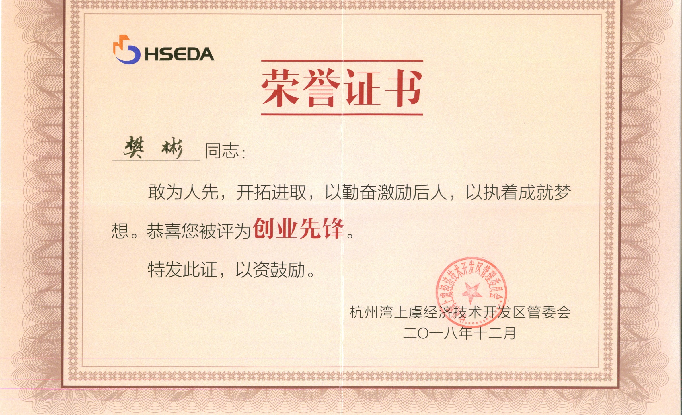 12月23日晚,為表彰先進,杭州灣上虞經濟技術開發區在浙江理工大學科技與藝術學院舉辦了大型職工文藝匯演。十步之澤,必有芳草,文藝匯演現場,上虞區區委常委、常務副區長胡文煒,上虞區區委常委、開發區黨工委書記、管委會主任金山中等為經開區敢于創新、樂于奉獻的建設者們頒發了“和美先鋒”、“奉獻先鋒”、“創新先鋒”、“創業先鋒”等榮譽。揚帆新材在這次頒獎活動中,收獲滿滿,董事長樊彬榮獲了“創業先鋒”,上虞生產基地總經理助理郭正國、質檢部經理劉艷夫婦榮獲了“和美先鋒”,公司對他們獎項的獲得表示祝賀!