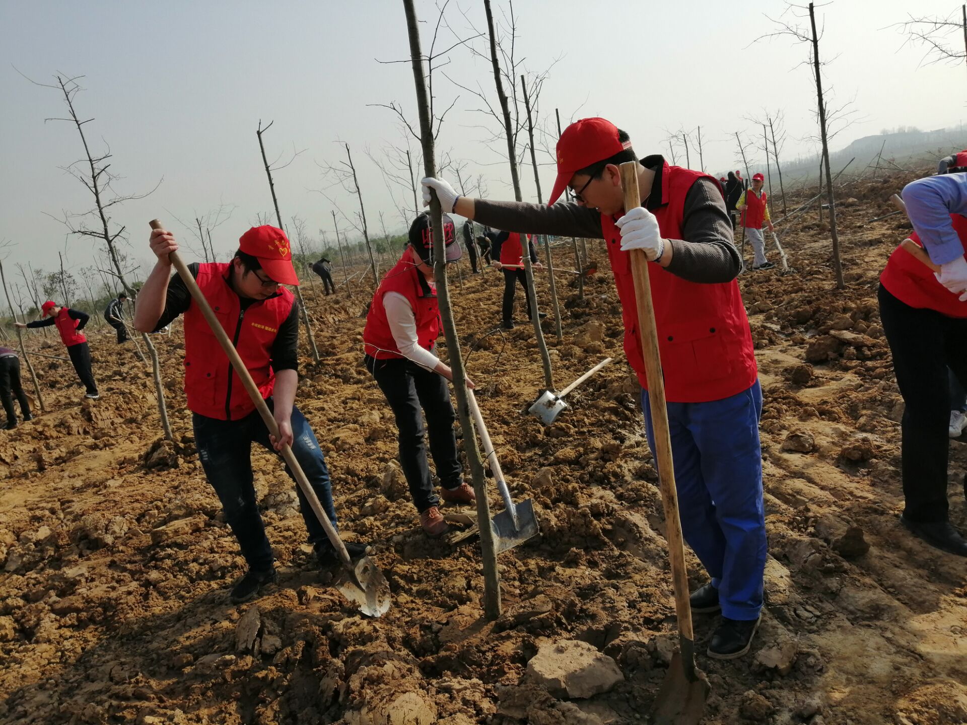 3月12日上午 ,團員們在團委書記的帶領下到達預定地點,按照預先的分組,全體人員很快就投入了植樹勞動,植樹現場,熱鬧非凡。團員們分工協作,有的挖坑,有的植樹苗,栽得認真,干得賣力,整個植樹活動現場一片熱火朝天的勞動景象。大家一邊植樹,一邊了解今年種植的樹木品種、生長周期,樹木成活等情況,充分享受著植樹活動帶來的樂趣。經過一上午的努力,200棵樹苗栽植完成,活動取得圓滿的成功。