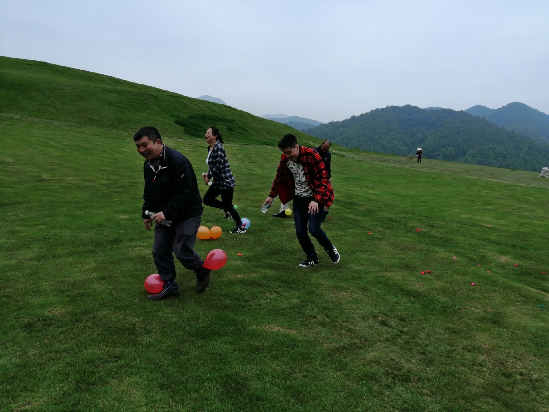 參觀后,大家興高采烈地去游玩園內(nèi)各個(gè)項(xiàng)目:滑草、真人CS、飛天蹦極、海盜船、悠悠球……豐富的項(xiàng)目設(shè)置,讓大家忘記了年齡、忘記了工作的壓力、生活的煩惱。游玩期間,團(tuán)支部還為大家準(zhǔn)備了集體小游戲:踩氣球、蘿卜蹲、真心話大冒險(xiǎn)……游戲很簡(jiǎn)單,但大家參與性都非常高,歡聲笑語(yǔ)遍布在廣闊的綠野上,也深深留在大家的心中。
