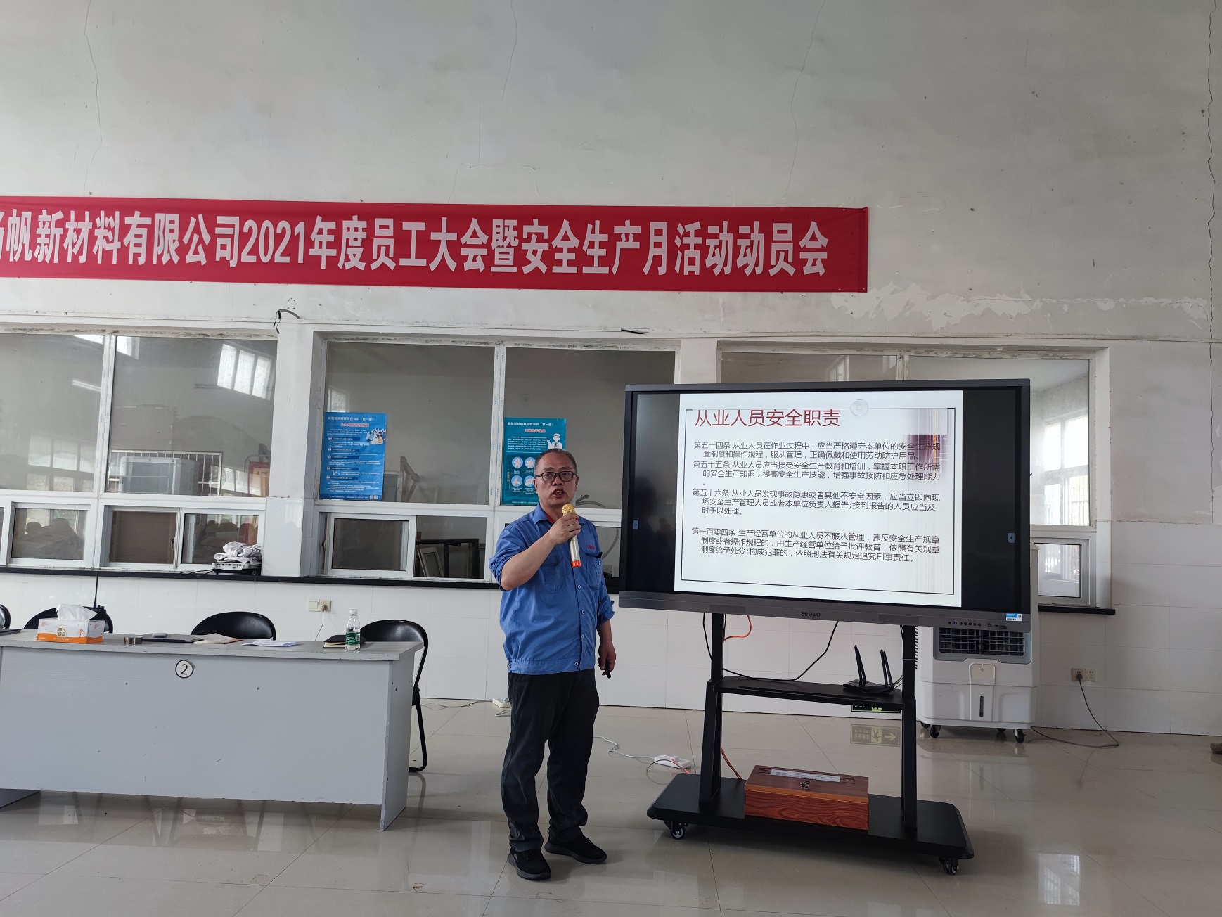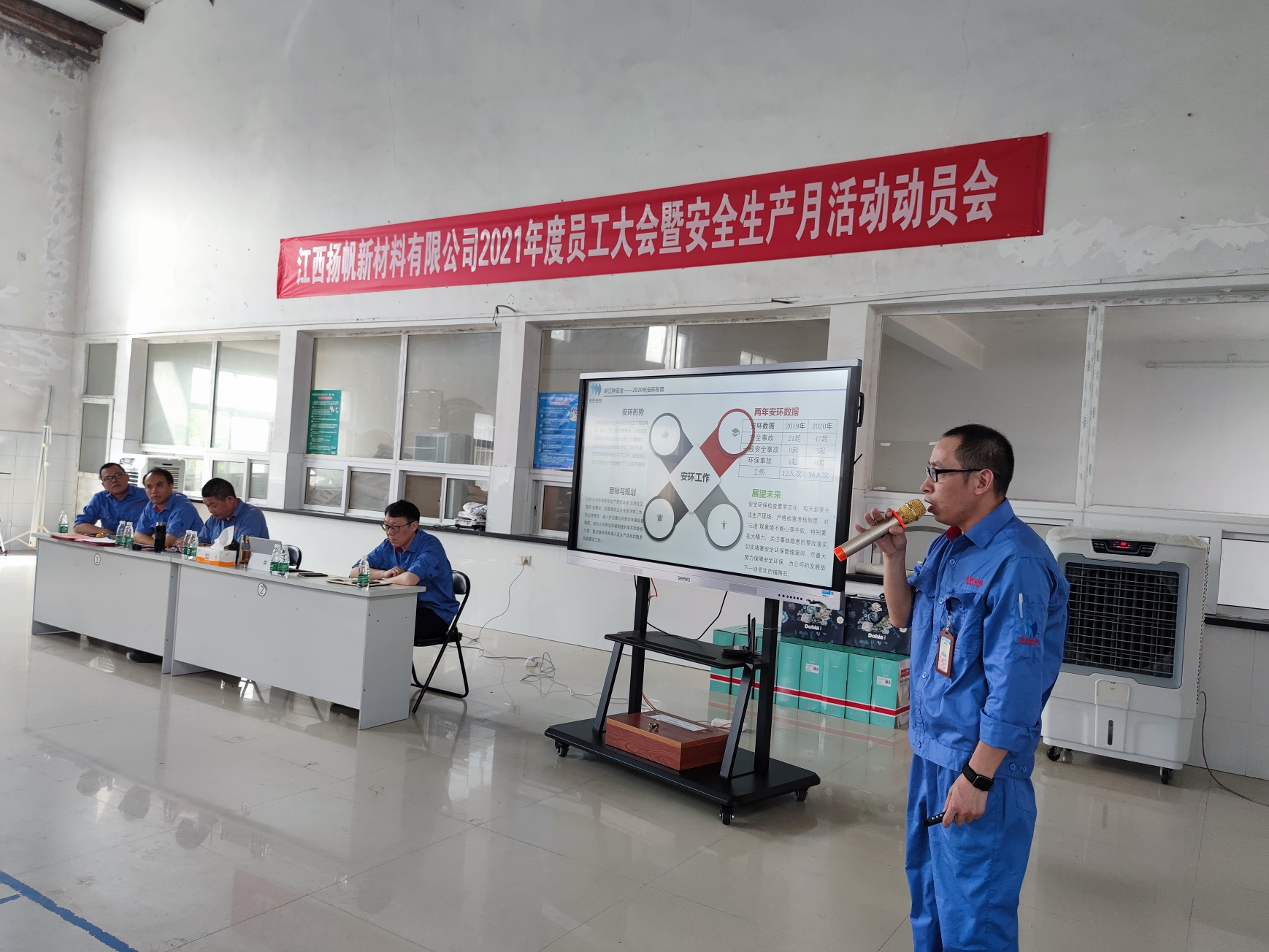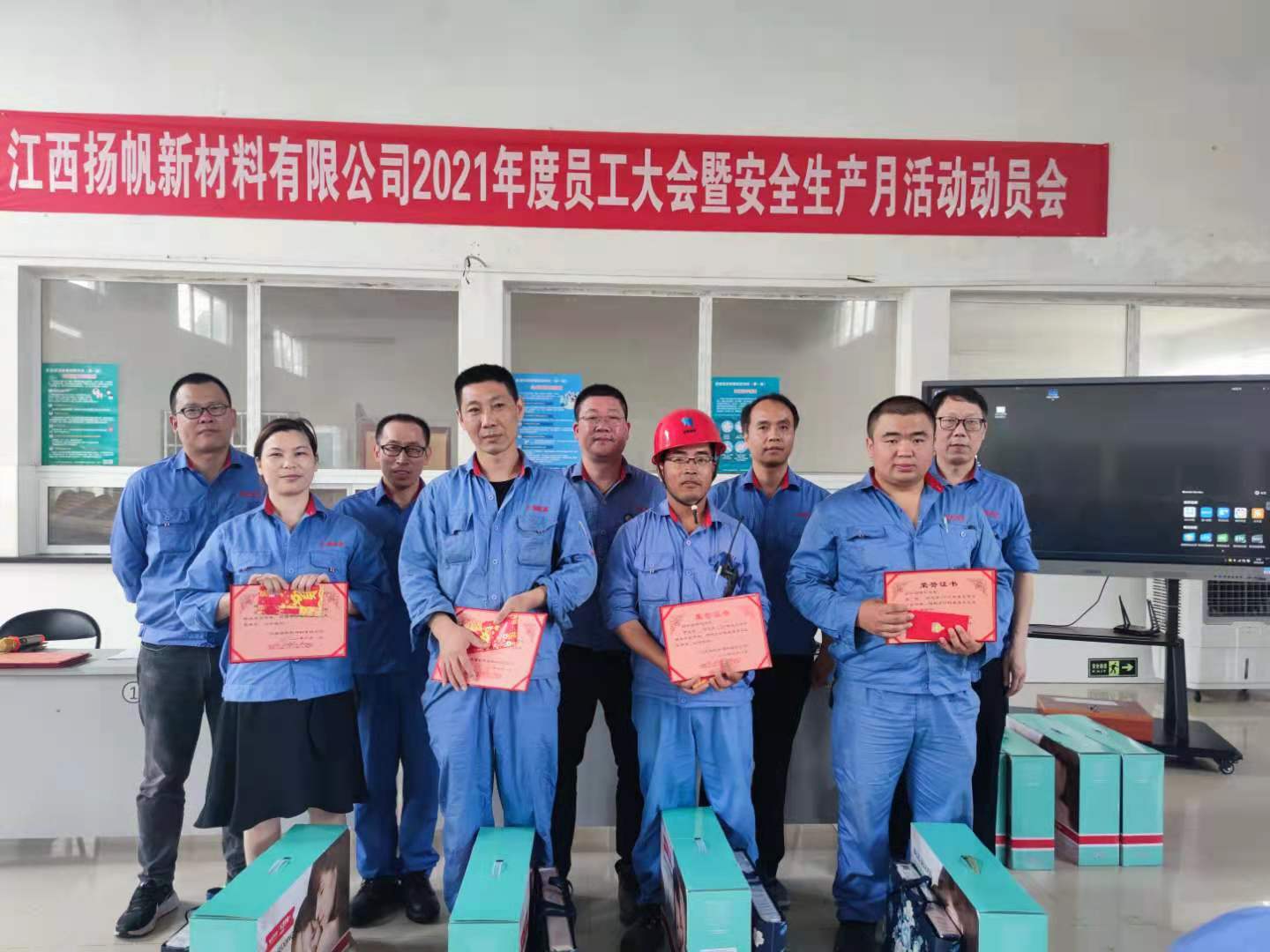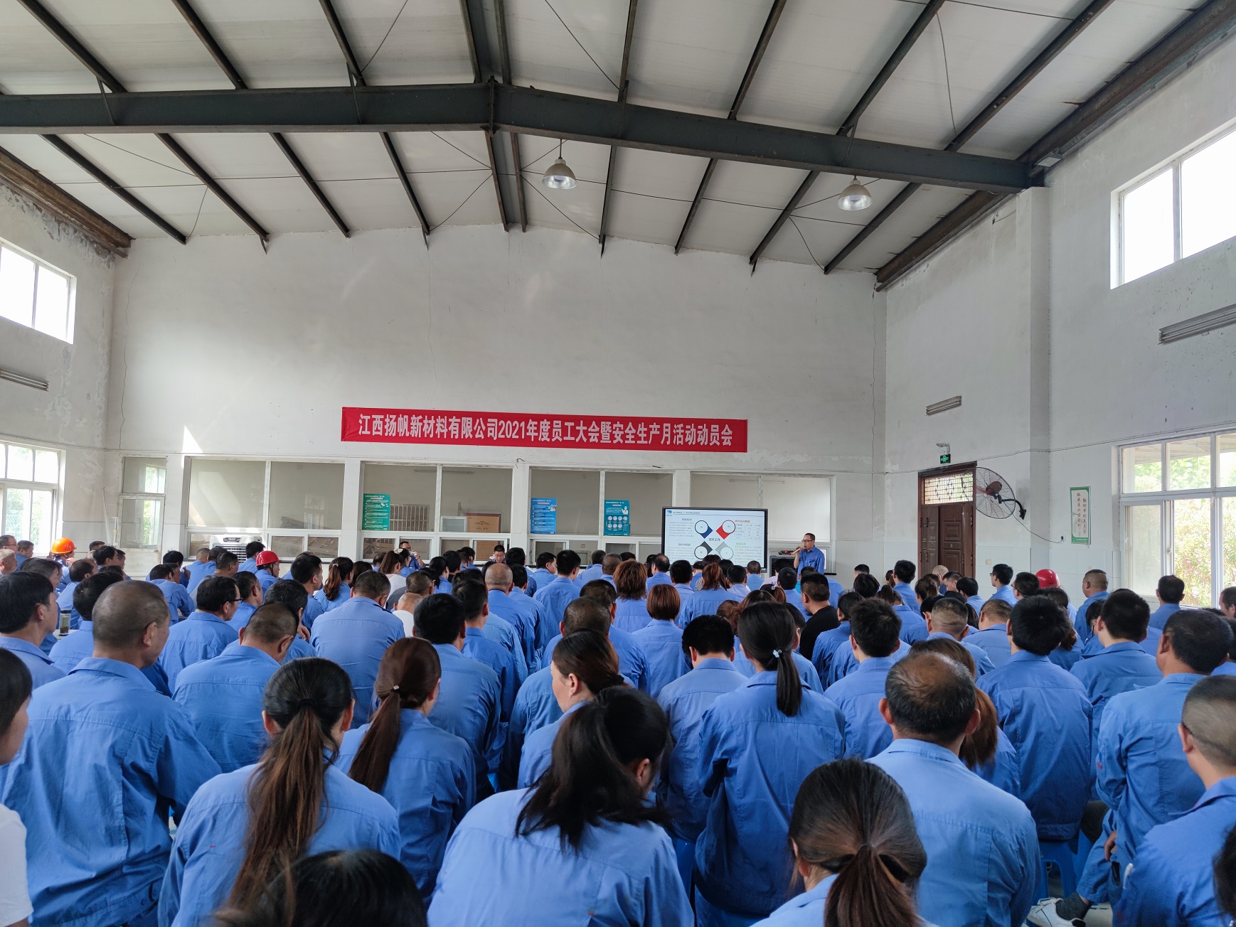 2021年6月8日,江西揚(yáng)帆公司召開2021年度員工大會(huì)暨安全生產(chǎn)月動(dòng)員會(huì)。揚(yáng)帆新材副總裁陶明,江西揚(yáng)帆公司總經(jīng)理余立志及經(jīng)營(yíng)班子成員和全體員工參加了此次會(huì)議。會(huì)議由副總經(jīng)理呂雪皓主持。