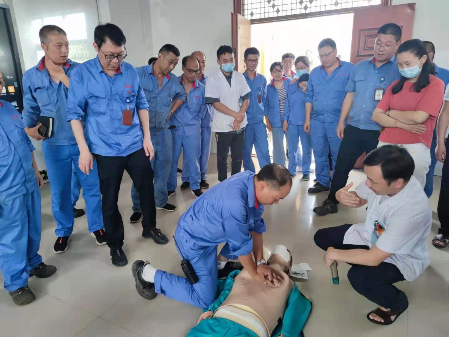 本次大會(huì)作為安全生產(chǎn)月動(dòng)員會(huì),在聽取余總報(bào)告后,公司特邀彭澤縣人民醫(yī)院重癥醫(yī)學(xué)科主任姚紅寶為全體員工進(jìn)行急救知識(shí)培訓(xùn)及心肺復(fù)蘇實(shí)操演練,并邀請(qǐng)了近10名員工進(jìn)行了手把手教學(xué)、操練。公司領(lǐng)導(dǎo)表示,本次現(xiàn)場(chǎng)教學(xué)僅為急救知識(shí)培訓(xùn)的開端,公司將把今天的培訓(xùn)內(nèi)容作為安全生產(chǎn)月其中一項(xiàng)活動(dòng)開展,對(duì)全員開展培訓(xùn),力求每位員工都掌握正確的心肺復(fù)蘇操作方法。
