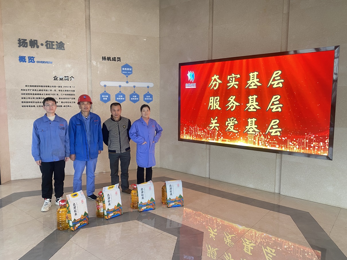 為推進(jìn)學(xué)習(xí)貫徹習(xí)近平新時(shí)代中國特色社會(huì)主義思想主題教育走深走實(shí),弘揚(yáng)中華傳統(tǒng)美德,關(guān)愛困難群體,履行社會(huì)責(zé)任,彰顯企業(yè)擔(dān)當(dāng), 2023年 11月17日下午,揚(yáng)帆新材支部委員會(huì)開展了走訪慰問老員工老黨員活動(dòng),為12戶職工送去了米、油等生活必需品。