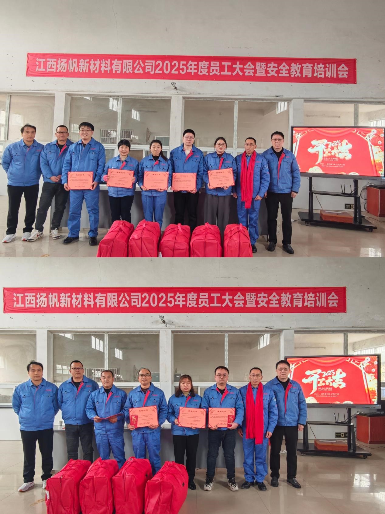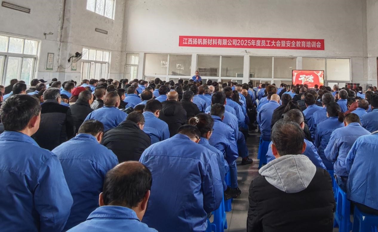 2025年2月6日,江西揚(yáng)帆公司召開2025年度員工大會(huì)暨安全教育培訓(xùn)會(huì)。公司總經(jīng)理余立志及經(jīng)營班子成員和全體員工參加了此次會(huì)議。會(huì)議由副總經(jīng)理呂雪皓主持。