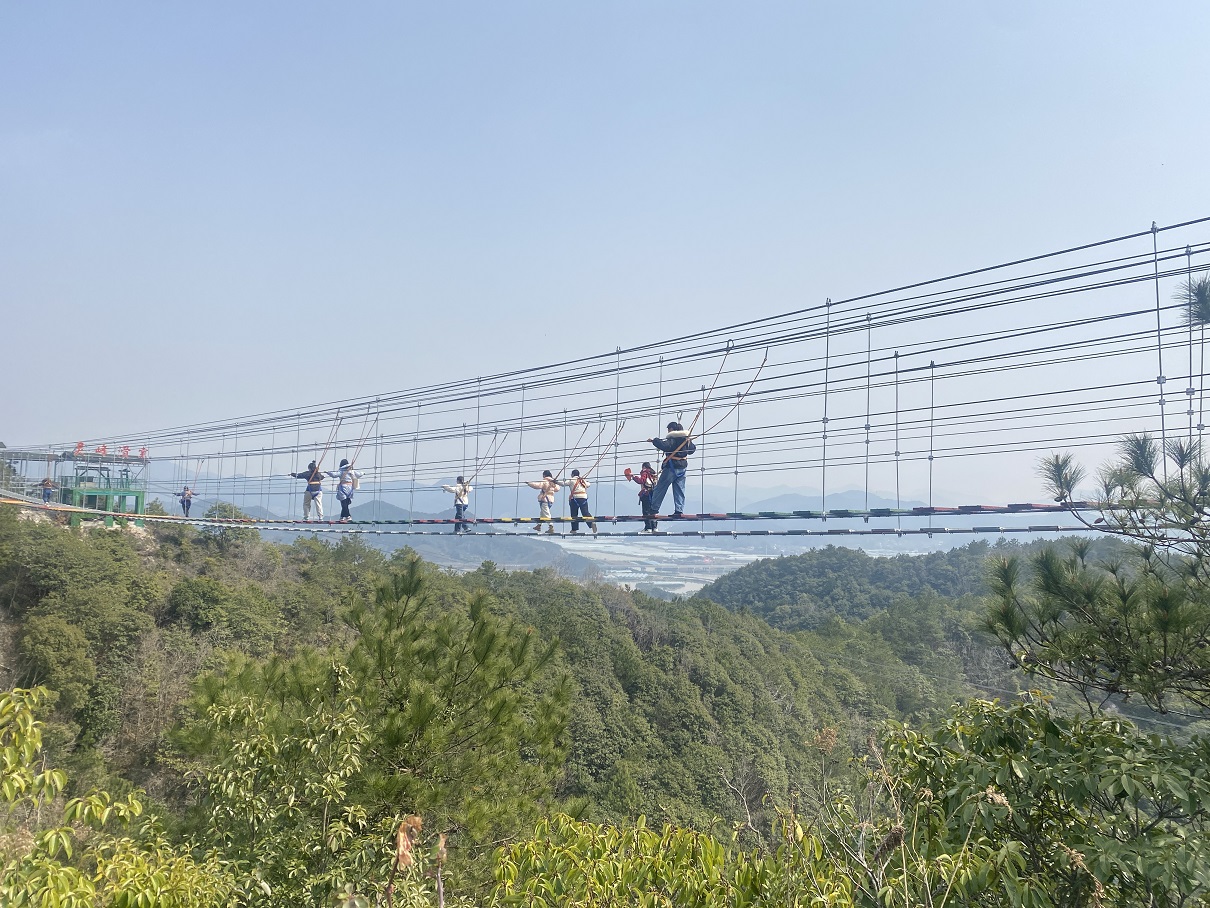 景區(qū)內(nèi)的高空體驗(yàn)項(xiàng)目成為活動(dòng)亮點(diǎn)。女職工們分組挑戰(zhàn)“步步驚心”、玻璃橋及森林水滑道,在驚險(xiǎn)與趣味中突破自我。玻璃橋上,她們攜手前行,以默契配合跨越懸空障礙;水滑道疾馳而下,團(tuán)隊(duì)協(xié)作讓速度與激情并存。這些項(xiàng)目不僅考驗(yàn)個(gè)人膽識(shí),更強(qiáng)化了互助協(xié)作的團(tuán)隊(duì)精神?。