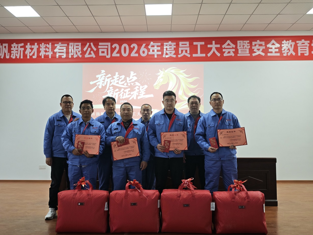 龍馬啟新程,聚力向未來。2月24日,江西揚(yáng)帆新材料有限公司2026年度員工大會(huì)暨安全教育培訓(xùn)會(huì)圓滿召開,全體員工齊聚一堂,總結(jié)過往發(fā)展成果、表彰先進(jìn)模范典型、部署新年工作目標(biāo)、筑牢安全生產(chǎn)防線,為新一年公司高質(zhì)量發(fā)展凝聚同心奮進(jìn)的磅礴力量。本次會(huì)議由公司副總經(jīng)理呂雪皓主持。