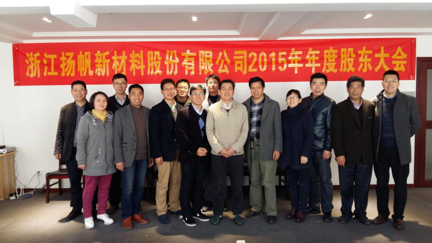 2016年3月2日下午,浙江揚帆新材料股份有限公司2015年年度股東大會在位于杭州的揚帆大廈四樓會議室召開,揚帆新材料股份公司的股東及股東委托代理人、董事監(jiān)事會成員以及部分高管團(tuán)隊成員參加了本次會議。